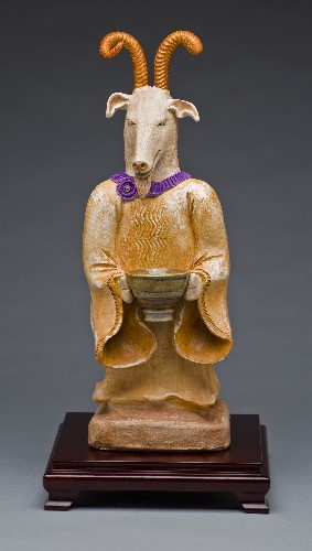 My Goat Tea series was inspired by a visit to the Guarnacci Etruscan Museum in Volterra, Italy. In this Tuscan hilltop town, I found rooms of small sarcophagi upon which sculpted human figures reclined, all holding banquest vessels, enjoying themselves for eternity. My